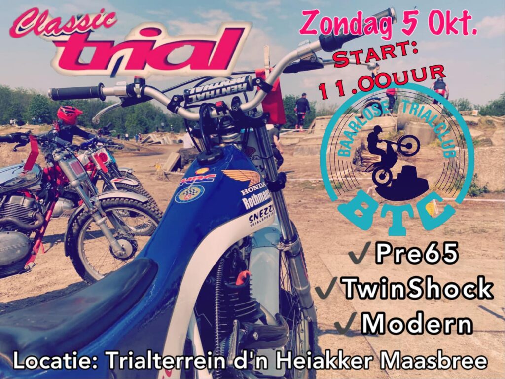 De jaarlijkse gezellige ClassicTrial strijkt weer neer bij BTC op het Trialterrein d’n Heiakker in Maasbree.